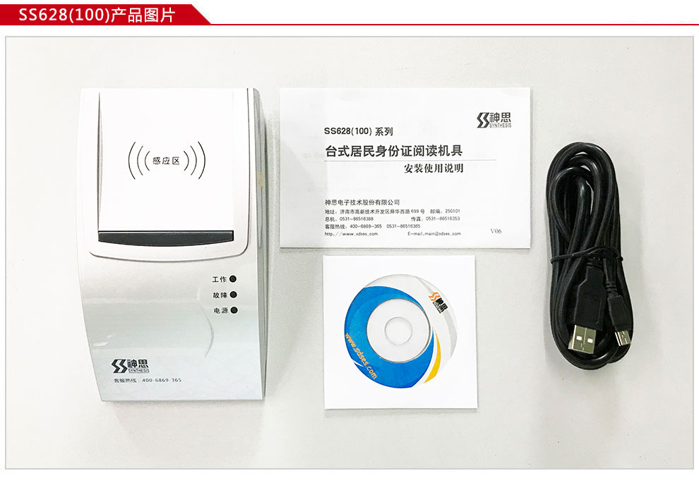 神思SS628(100U)身份證閱讀器是神思一款功能強大,質量穩定的讀取身份證信息器具